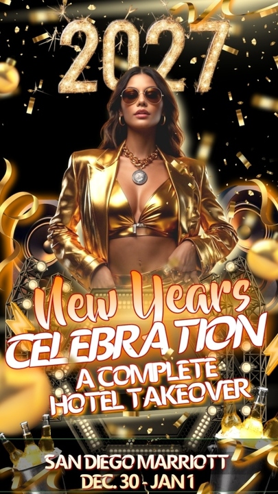 The Largest Lifestyle NYE Party in the Country! A Complete takeover of the San Diego Marriott in La Jolla! This is our 11th... moreThe Largest Lifestyle NYE Party in the Country! A Complete takeover of the San Diego Marriott in La Jolla! This is our 11th year hosting this party at this venue. We always sell out. Book early for the best selection of rooms and suites.